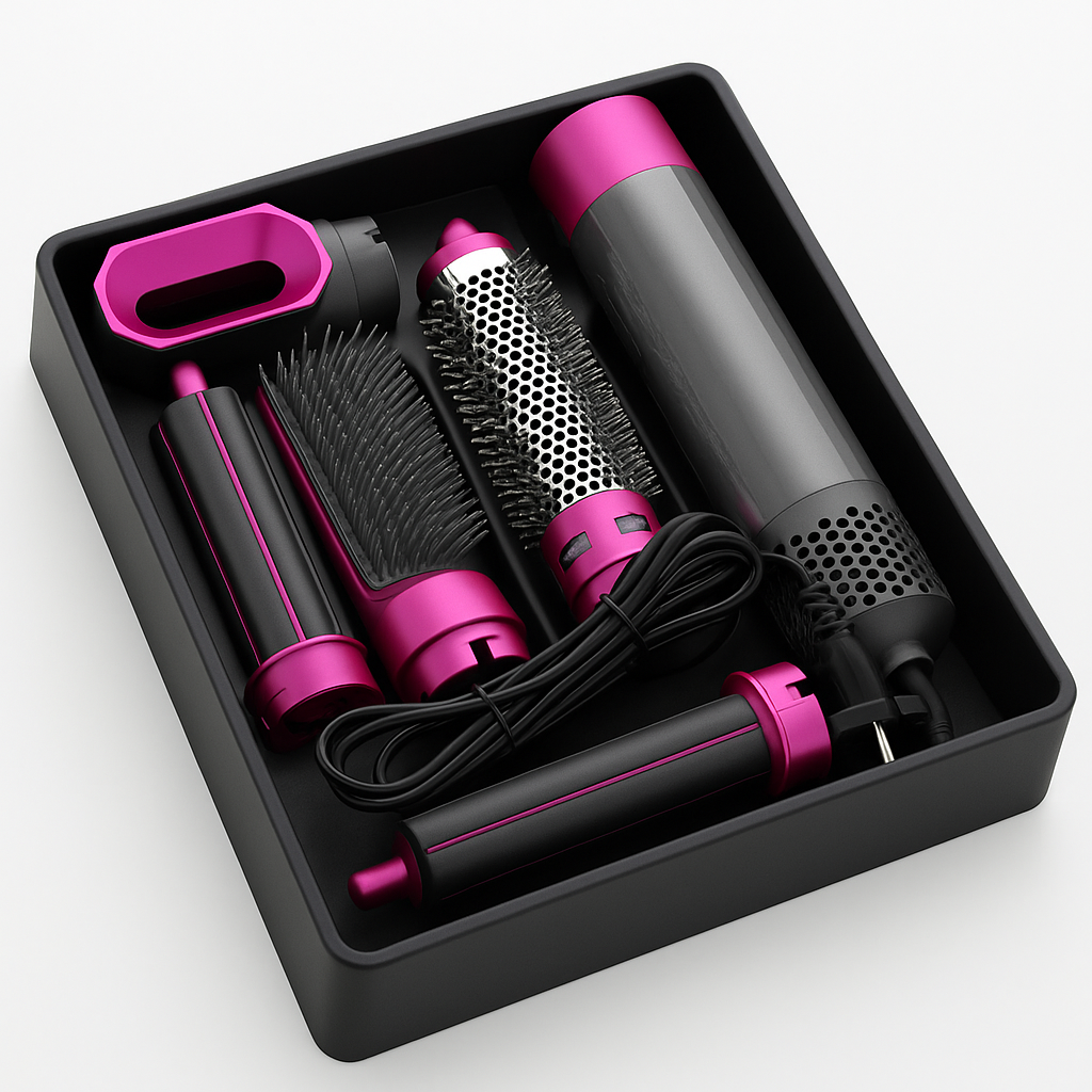 Ya no necesitas plancha, secador, cepillo ni rizador. Todo lo que usas a diario para tu cabello está reunido en un solo aparato práctico y fácil de usar.